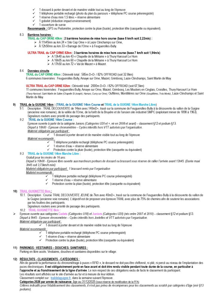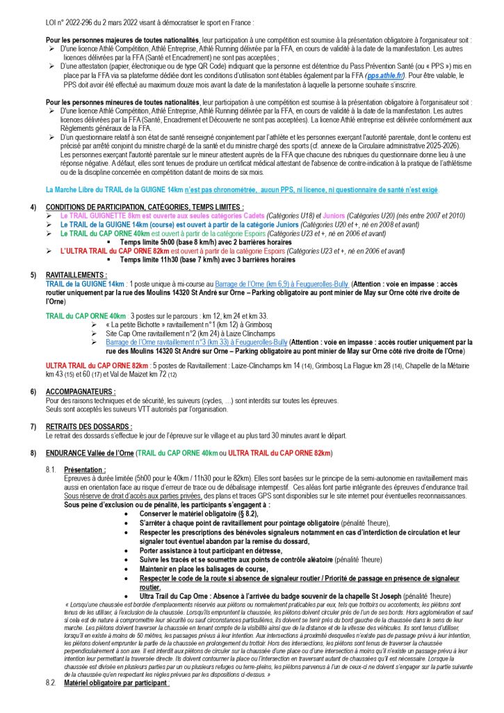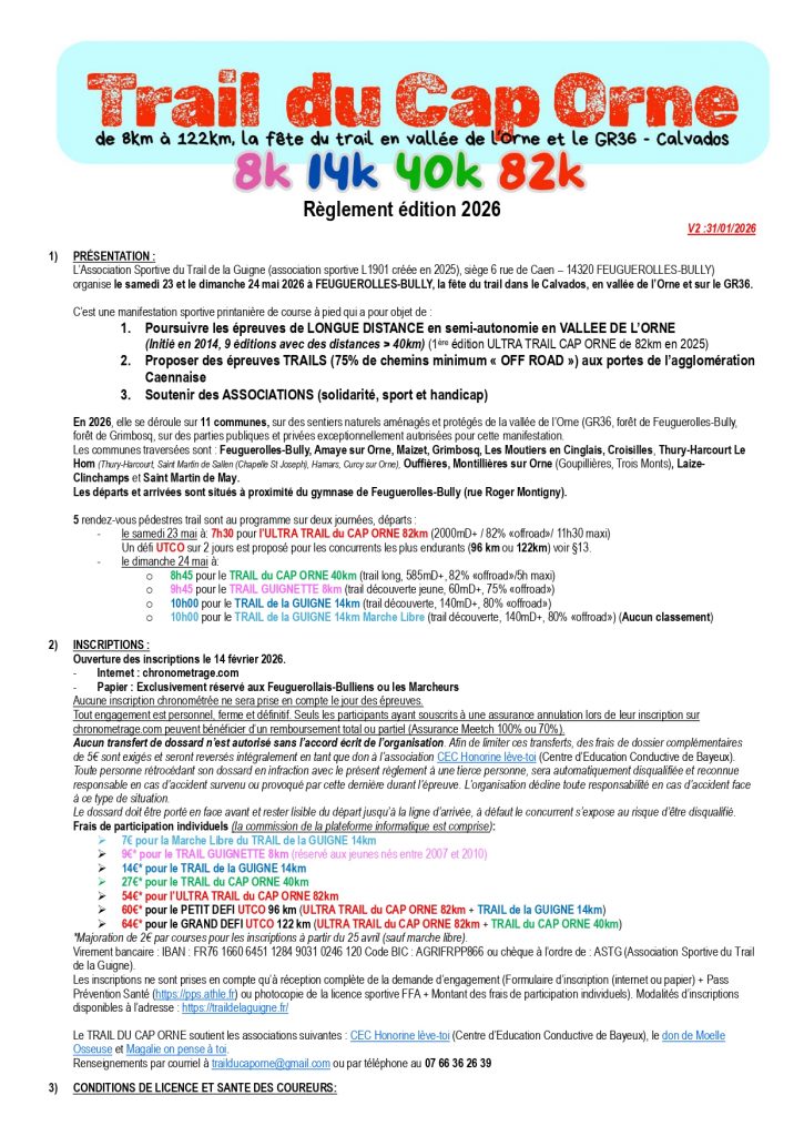 Règlement édition 2026 « Trail de Cap Orne »